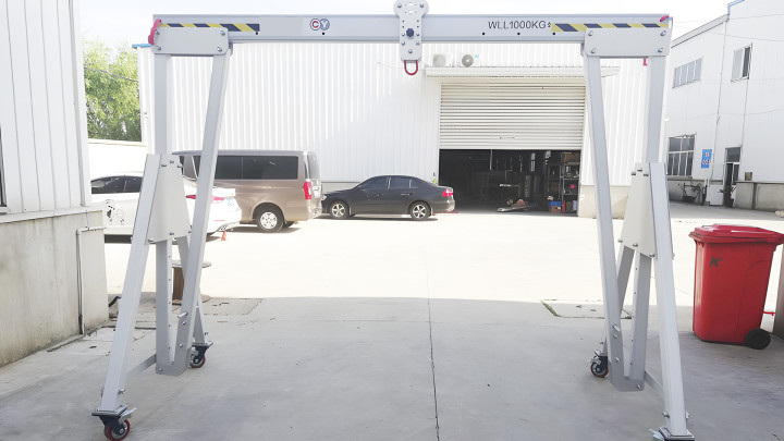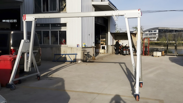 常见问题处理:若出现局部锈迹,用铝合金专用清洁剂清理;移动时卡顿需立即停止,检查是否有障碍物或轮子磨损;起重时主梁轻微弯曲,先排查是否超载,未超载可调整支腿间距缓解。